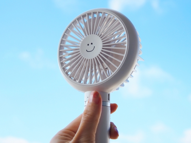 ポータブル扇風機や扇子をふだんから持ち歩くことが