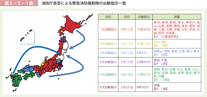 東日本大震災では全国から救援が岩手・宮城・福島に集結しました。